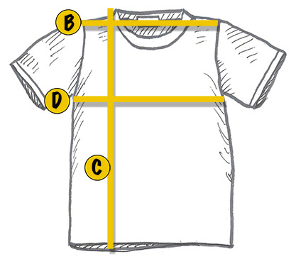B Shoulder wdtD - Chest widthC - Top lengthSIZE