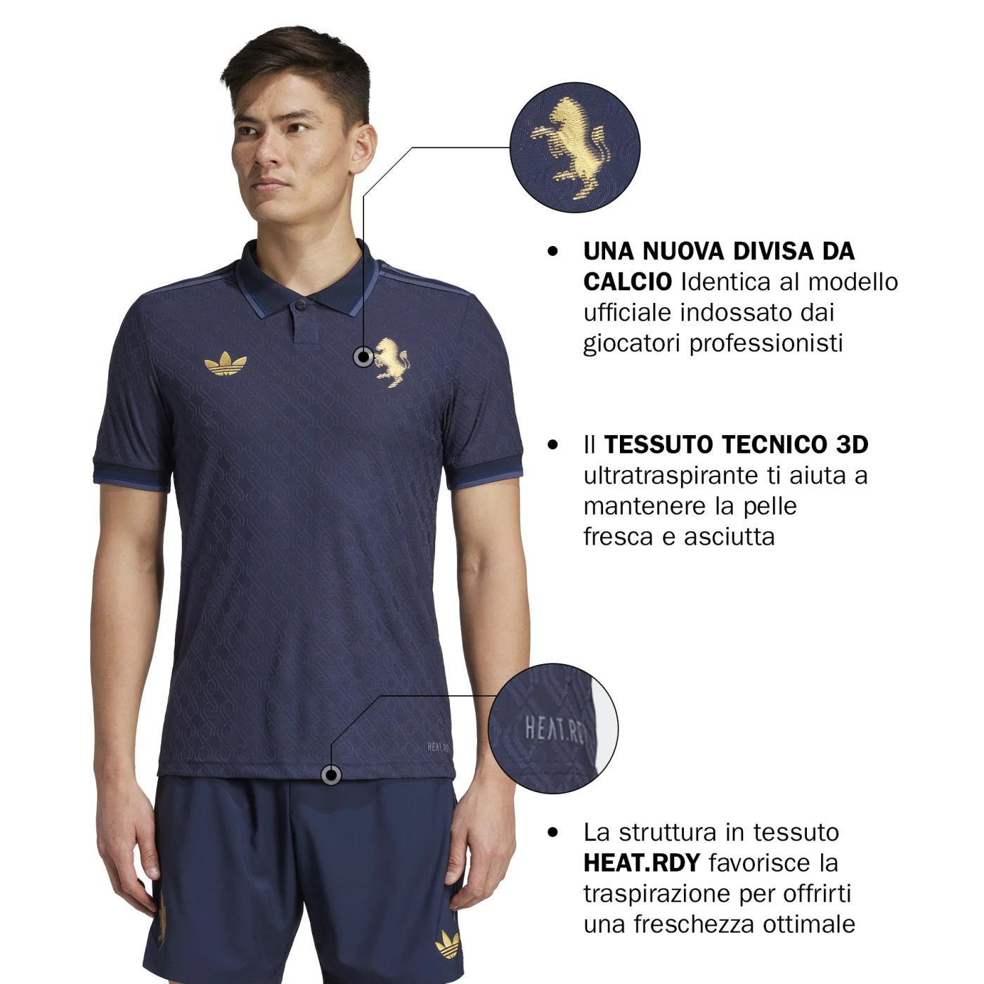Inspired by the endless majesty of the night sky, it’s dressed in navy with engineered, crest-inspired graphics. Golden details include an iconic adidas Trefoil and a classic club badge. Built to ensure players hit the heights on the field, this football shirt also sports ventilated HEAT.RDY. Heaven-sent style meets high-tech athletic performance in this elegant Juventus third authentic jersey.