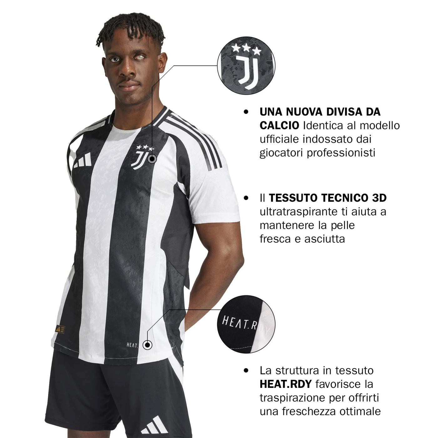 With a return to Earth’s closest neighbour on the horizon, this Juventus authentic jersey from adidas looks forward with a lunar surface-inspired graphic engineered into its soft fabric. High-tech HEAT.RDY and a lightweight heat-applied badge work together to help football players reach for the stars.
